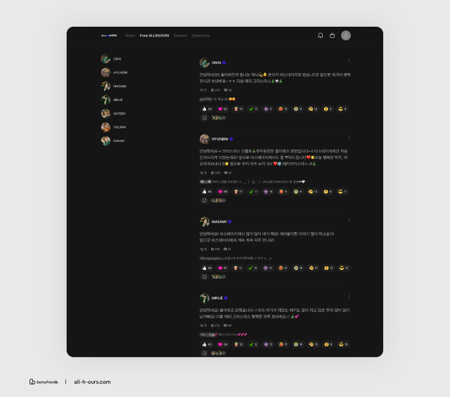 The rookie idol group ALL(H)OURS, scheduled to debut on January 10, 2024, has been building an official fan community (all-h-ours.com) on b.stage. Thanks to this, the group has been able to engage actively with fans around the world even before their official debut. Coinciding with the launch of their official community, the group is hosting a fan club name contest using b.stage’s Survey feature.