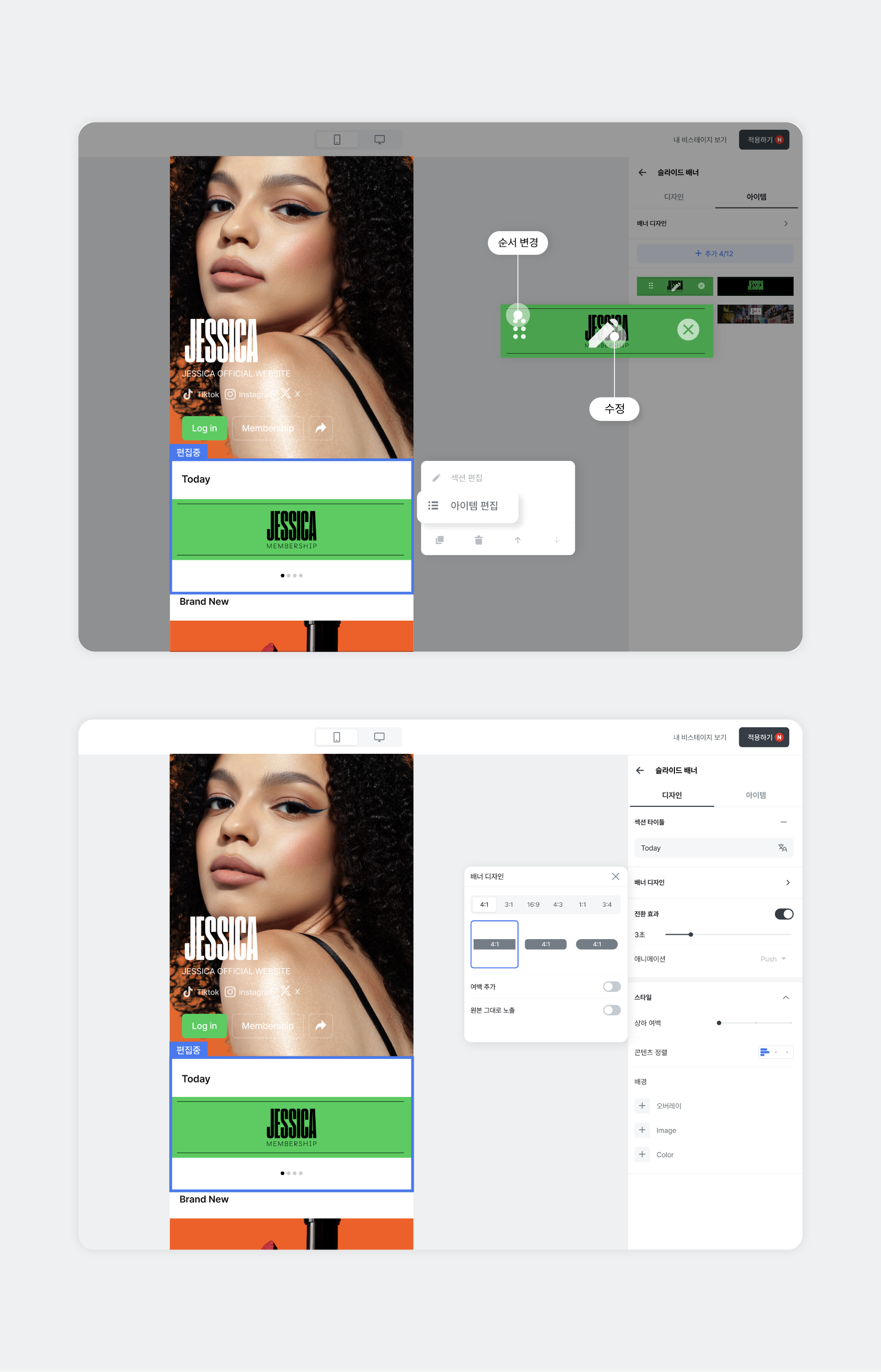 STEP3. [상품], [배너] 섹션 추가 및 상세 편집