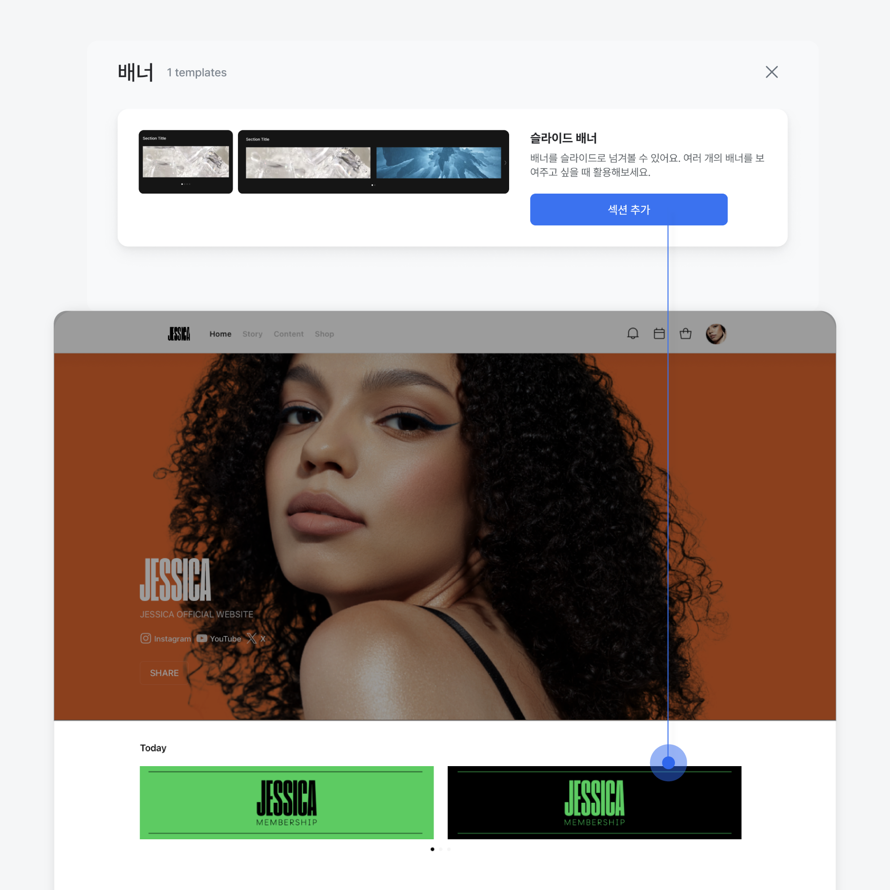 ‘배너’ 섹션을 추가하세요.