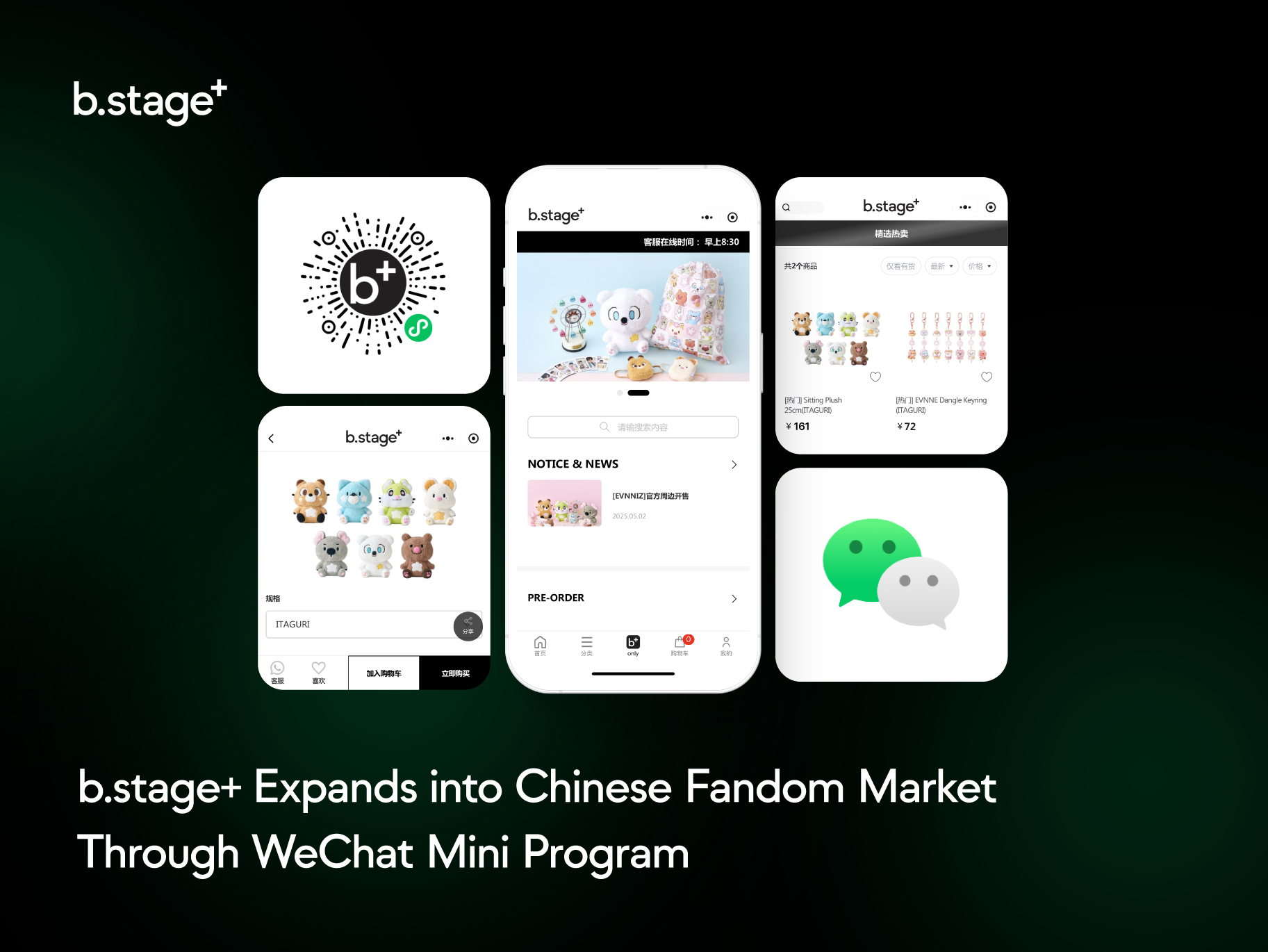 SEOUL, KOREA - May 13, 2025 (Tue) - b.stage+, a fan-based platform launched by global fandom platform b.stage, has officially launched its e-commerce mall as a mini program within WeChat, China's largest messaging app. Through this partnership, Chinese fans can now more conveniently purchase various products sold on b.stage+, including K-POP and K-culture merchandise, albums, and other items.