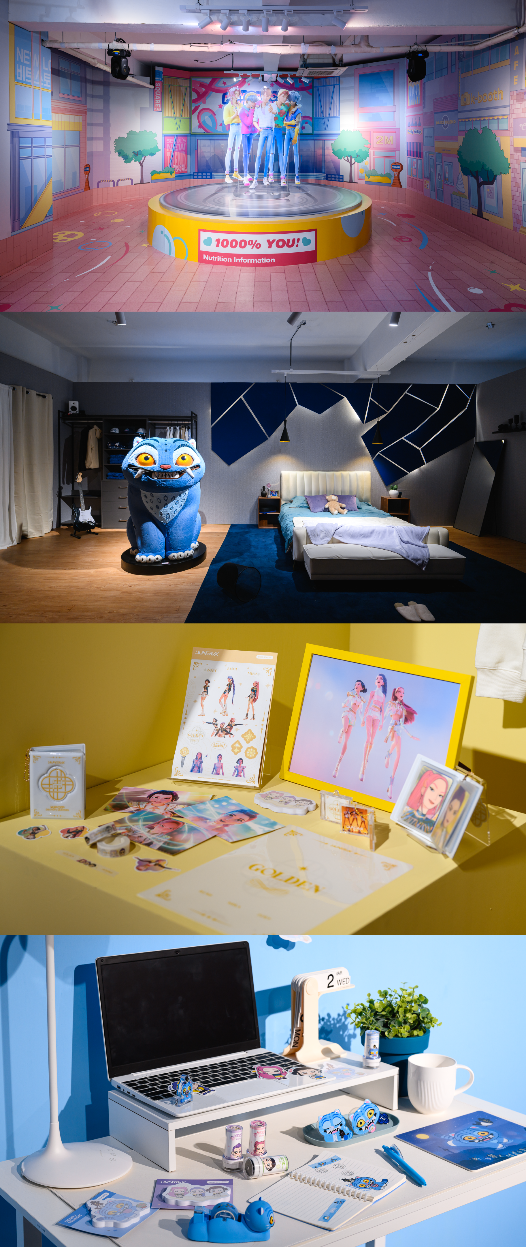 The pop-up connects all three floors into a continuous worldview experience. The third-floor showroom provides an initial preview of merchandise atmosphere before the main tour. The second floor offers an immersive exhibition and experience zones themed around signature “KPop Demon Hunters” songs like "How It's Done" and "Soda Pop," allowing fans to dive into the complete story. The first floor features on-site merchandise pickup and a customization space for keychains and patches, culminating in the "Golden Stage" where visitors can complete the worldview's central narrative, “sealing the Honmoon."